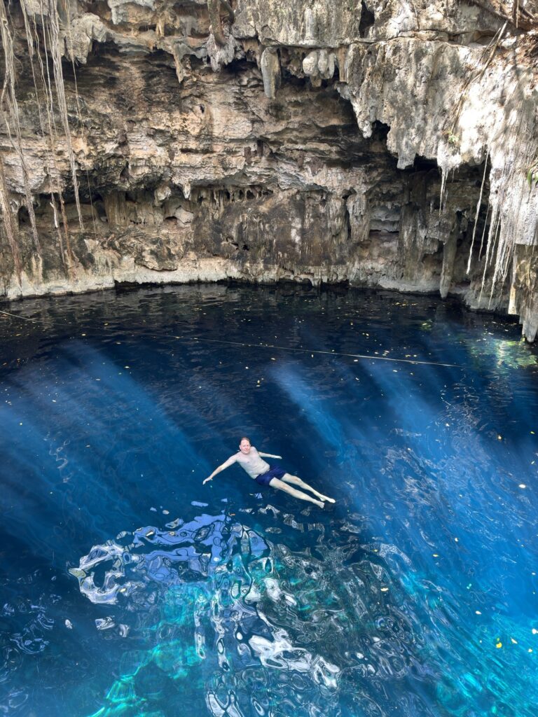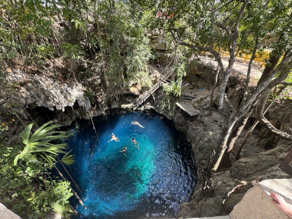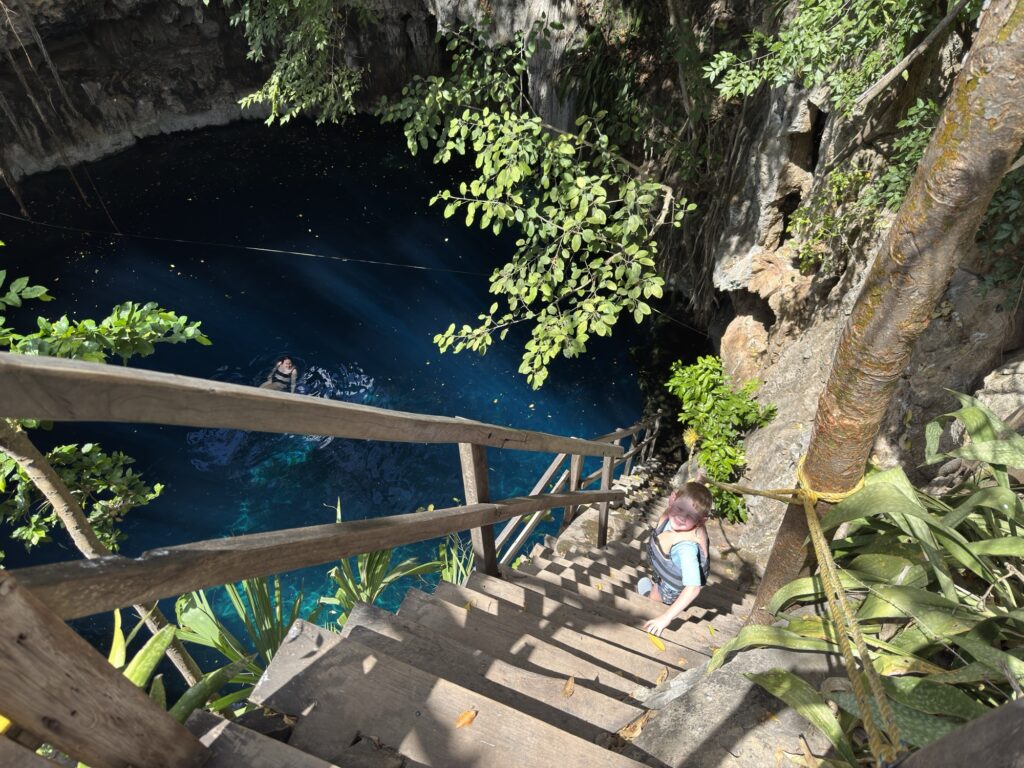 Zum Nachtisch gab es Honigmelone. Satt gegessen sind wir dann zur gegenüberliegenden Cenote spaziert und konnten uns dort super abkühlen